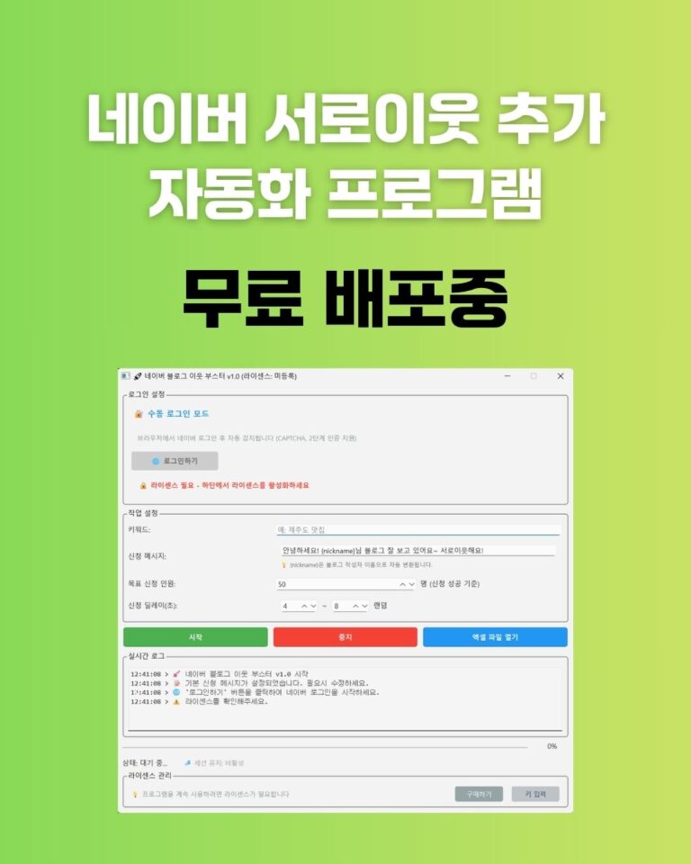 네이버 블로그 서로이웃 추가 프로그램 무료 배포중